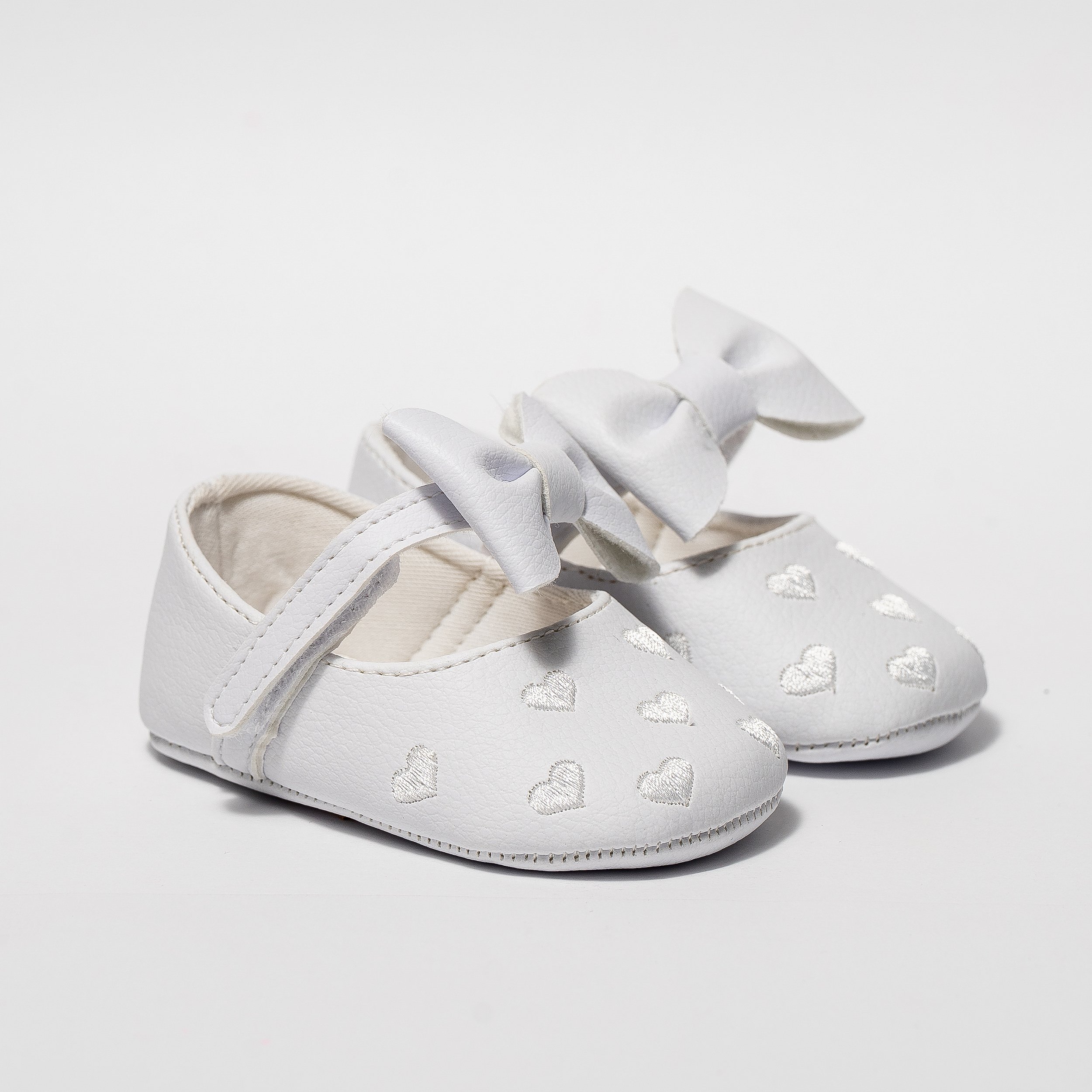 SAPATILHA LOVE - COR BRANCA - C/ LAÇO E BORDADO CORAÇÃO - LINHA BABY