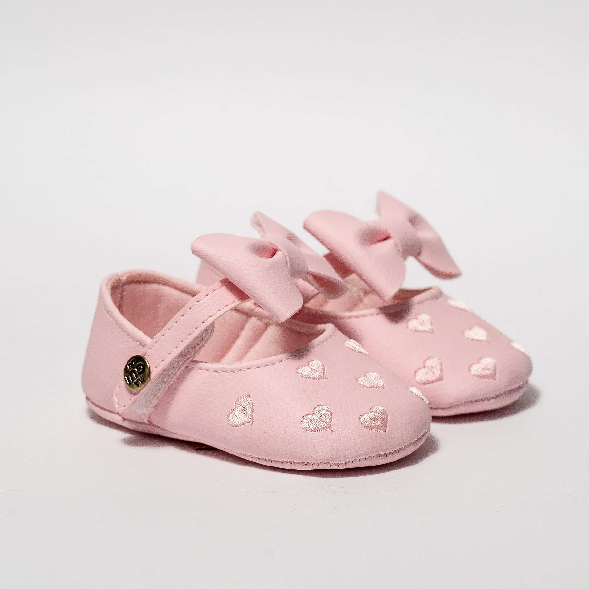 SAPATILHA LOVE - COR ROSA - C/ LAÇO E BORDADO CORAÇÃO - LINHA BABY