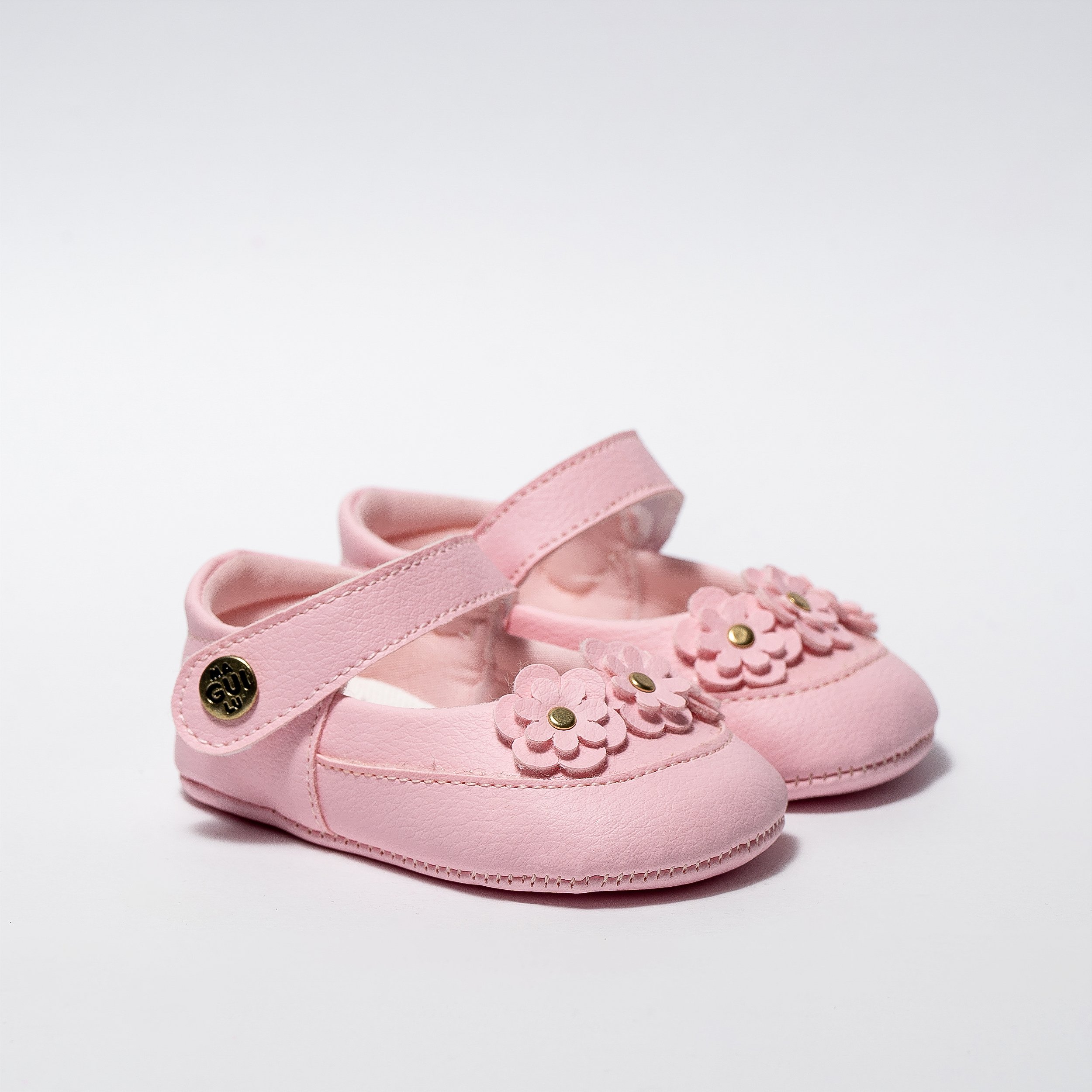 SAPATILHA SOFISTICADA - ROSA - 3 FLORES DUPLAS - MATERIAL SINTETICO - LINHA BABY