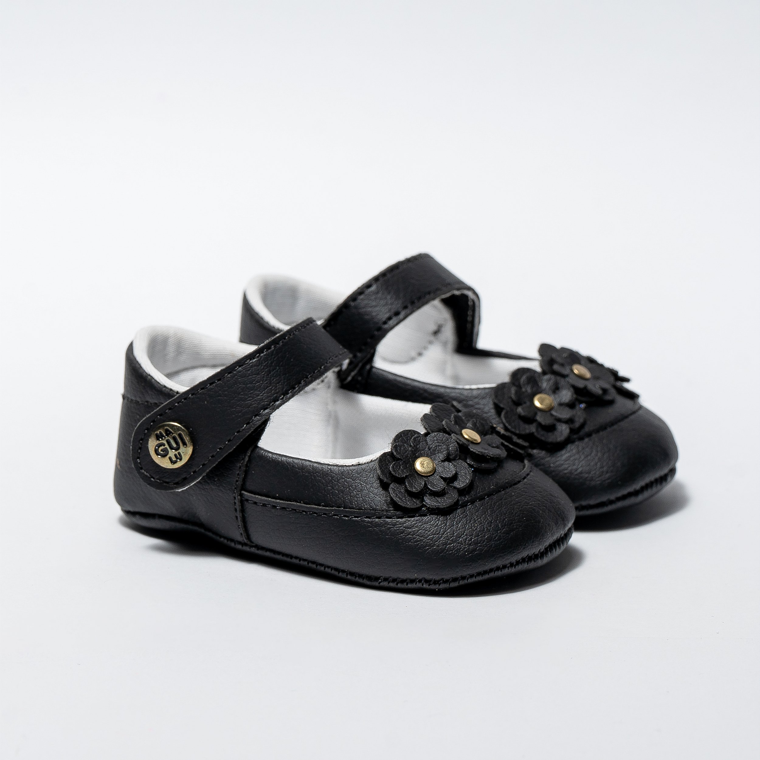 SAPATILHA SOFISTICADA - PRETO - 3 FLORES DUPLAS - MATERIAL SINTETICO - LINHA BABY