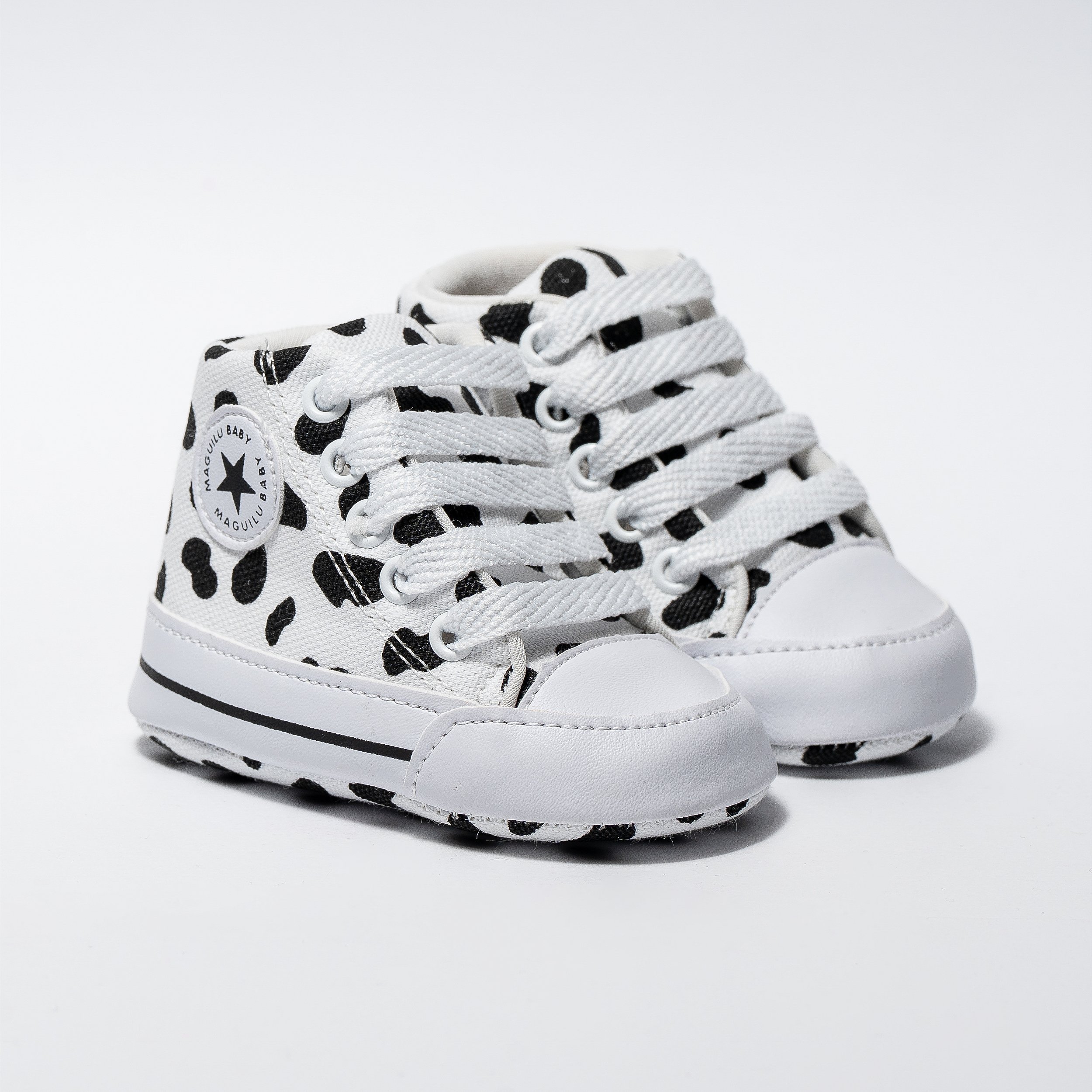 O STARZINHO CANO ALTO - COR BRANCO c/ ESTAMPA VAQUINHA - MATERIAL LONA - LINHA BABY é perfeito para o bebê usar no dia a dia, ou até mesmo em ocasiões especiais. Seu forro é feito em tecido com espuma para aconchegar os pezinhos do seu bebê com muito conforto e estilo.